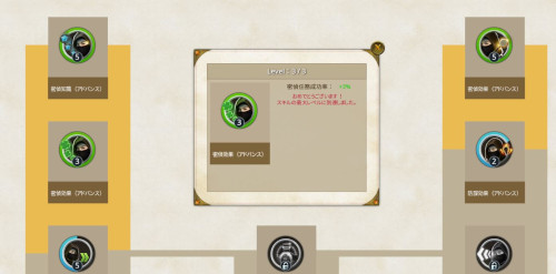 英雄クラスのとあるクラスがようやくレベル2に上がった。パラゴンレベルと同様になかなか上限まで辿り着けないヒエラルキーだけにうれしいものだ。割り振ったのは「スパイ」。密偵成功率が3%向上させることができたが、強敵と唯一対等に争えるスパイだけに忘れずに活用したいところだ。なかでも「反逆先導」は最大20000ユニットを敵から自軍へと引き入れられる。少なく思いがちだが、50回で1Mにおよぶ。筆者の場合、スパイ用マックス装備で19分、成功率が66%なのでスパイノーシールドを適当に狙えば案外手軽に兵を増やせる。