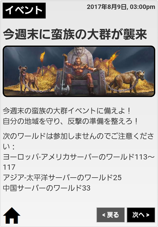 本日は防御フェーズ、明日26日は他ワールドからの侵略者が来ますので首都に兵を避難させている等している方は注意が必要です。