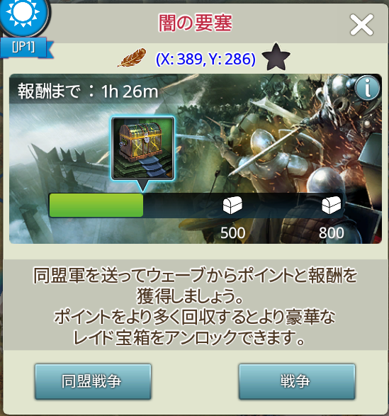 - 同盟レイドの有効期限は、闇の要塞が出現してから12時間です。