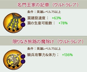 Ⅰ・食料貯蔵 食料貯蔵量+20% ・リーダーシップ 英雄EXP+10% ・鉱物貯蔵 鉱物貯蔵量+20% ・木材貯蔵 木材貯蔵量+10% ・石材貯蔵 石材貯蔵量+10% ・硬貨鋳造 銀貨貯蔵量+10%